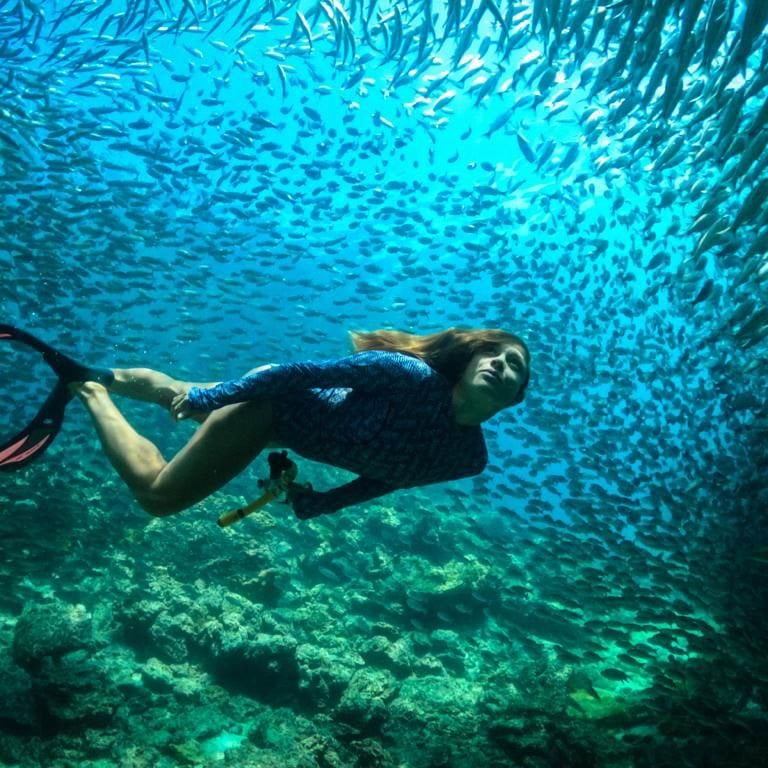 A nature lover in constant reinvention, Natalia maintains a deep bond with water and the sea, sources of healing and personal transformation. Outdoor activities—such as diving, freediving, swimming, climbing, and biking—are essential to her practice and to exploring her environment.